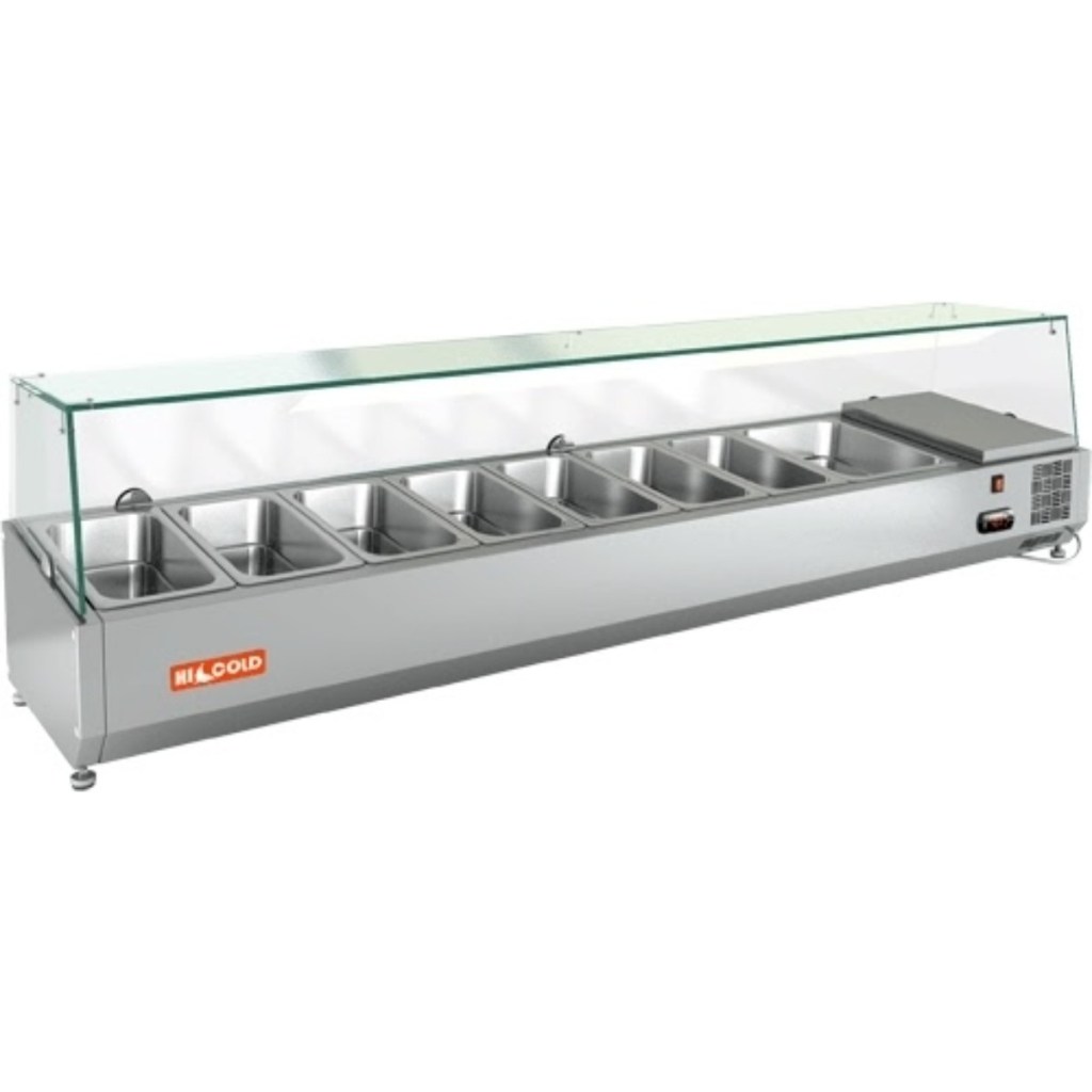 Каталог оборудования Холодильное оборудованиеВитрины для ингредиентовВитрина холодильная для ингредиентов HICOLD VRTG 1835 к PZ3 (1/3) Витрина холодильная для ингредиентов HICOLD VRTG 1835 к PZ3 (1/3) Код товара: 064-655 Поделиться: WhatsAppTelegram СравнитьДобавить в КПВ избранное 0 71 217 ₽ В корзину 0 шт В наличии на 1 складеДоступно для заказа 3 шт.Наличие на складахМоскваМО, Бритово, Раменский гор. округ, Складской комплекс ССТ, корп. 2, секция 2В наличии 3 шт.Самовывоз сегодня бесплатно Расчет стоимости доставкиОткудаМоскваКудаМоскваСанкт-ПетербургАстраханьБарнаулБелгородБрянскВладивостокВолгоградВоронежЕкатеринбургИвановоИжевскИркутскКазаньКалининградКемеровоКировКраснодарКрасноярскКурскЛипецкМагнитогорскМахачкалаНабережные ЧелныНижний НовгородНижний ТагилНовокузнецкНовосибирскОмскОренбургПензаПермьПятигорскРостов-на-ДонуРязаньСамараСаратовСимферопольСтавропольТверьТольяттиТомскТулаТюменьУлан-УдэУльяновскУфаХабаровскЧебоксарыЧелябинскЯрославльРассчитатьРасчет стоимости доставки указан приблизительный, более точный расчет Вам может осуществить сотрудник транспортной компании. Взять в кредит Купить в лизинг Получить консультацию в WhatsApp Описание Характеристики Отзывы 0 Инструкции 3 Витрина холодильная для ингредиентов HICOLD VRTG 1835 к PZ3 (1/3) предназначена для охлаждения, кратковременного хранения и демонстрации ингредиентов, салатов и готовых блюд на предприятиях общественного питания и торговли. Устанавливается на холодильные столы для пиццы серии PZ3 благодаря встроенным креплениям в нижней части корпуса. На фото показана аналогичная модель с настольной установкой. Ключевые особенности: Корпус из нержавеющей стали — долговечность, простота ухода. Электронная панель управления — точная регулировка температуры. Исполнение G — стеклянная надстройка для удобного обзора продуктов. Высота витрины — 459 мм — компактное размещение на рабочей поверхности. Вместимость: 7xGN1/3 + 1xGN1/2 — рациональная организация хранения (гастроёмкости приобретаются отдельно). Совместимые модели столов: PZ3-111/SN, PZ3-111/GN HICOLD VRTG 1835 к PZ3 (1/3) — это профессиональная настольная витрина, которая сочетает компактные размеры, современное управление и высокое качество охлаждения. Отличный выбор для пиццерий, ресторанов и кафе, где важны удобство доступа, скорость работы и эффектная подача продуктов.Изображение товара, представленного на фото, может отличаться от его фактического вида. Показать все Габаритные размеры1835×385×459 ммДиапазон рабочей температурыот +2 до +7 °CДлина1835 ммГлубина385 ммВысота459 ммТип крышкиСтеклянная Гастроемкостей8 штТип гастроемкостейGN1/3, GN1/2 Мощность150 ВтНапряжение220 ВТип охлажденияСтатическое Материал изготовленияНержавеющая сталь ХладагентR134 Мощность0,15 кВтВес нетто 55 кгВес брутто102 кгТип оттайкиРучная Габариты в упаковке2030×590×550 ммБрендHicold Оставить отзыв Еще никто не оставил отзыв на этот товар Инструкция на HICOLD VRTG 1835 к PZ3.pdfСхема установки на стол.jpgДекларация о соответствии.pdf Похожие товары Перейти в каталог Под заказ 101 613 ₽ Витрина холодильная для ингредиентов TEFCOLD VK33-180 С этим товаром покупают В наличии 83 720 ₽ Шкаф холодильный МХМ Капри 0,7М
