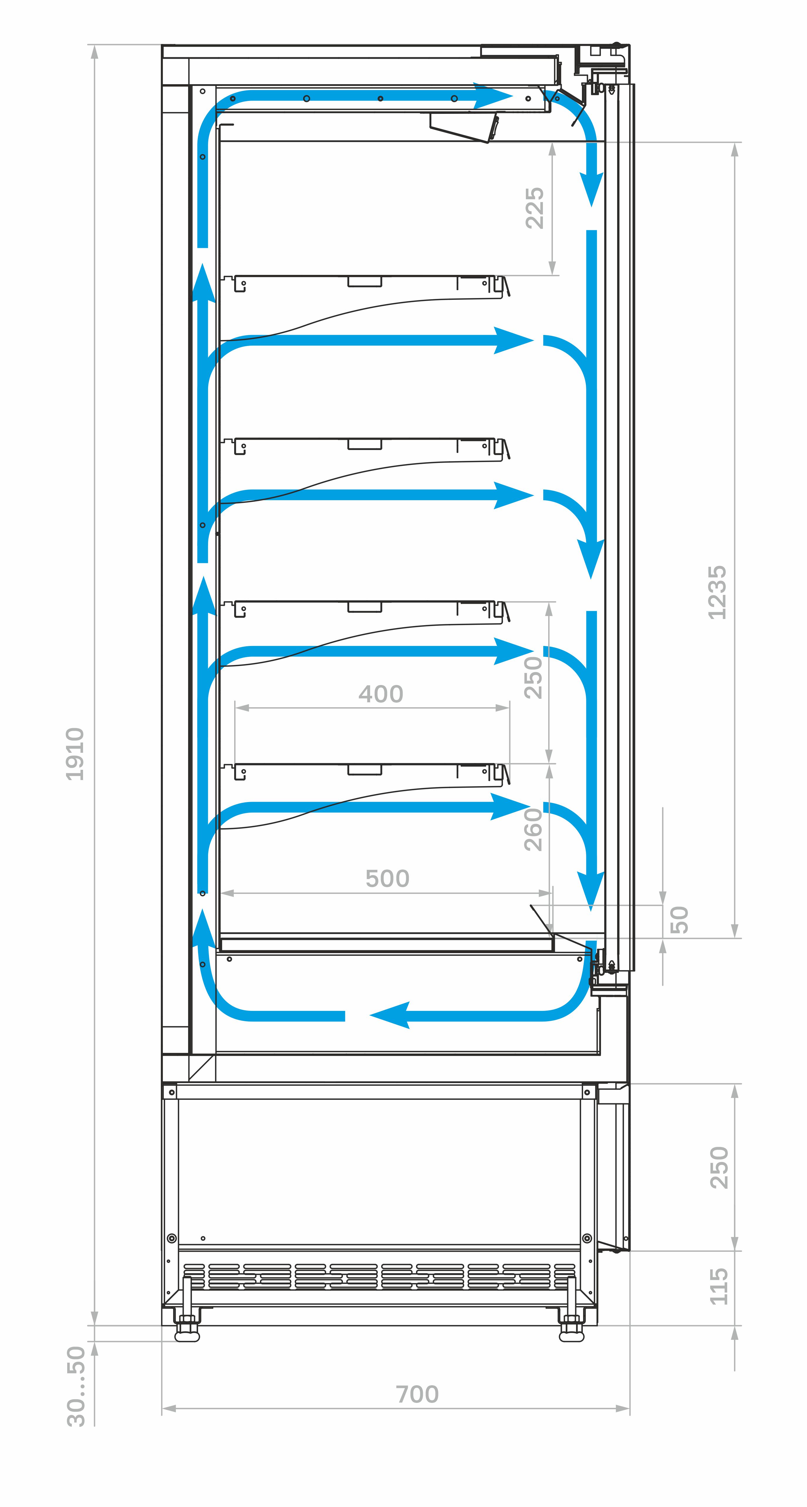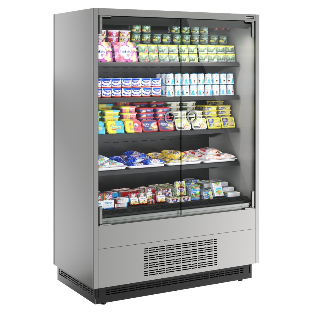 Боковины – металлические с зеркальным покрытием для улучшения обзора продукции и визуального расширения пространства;