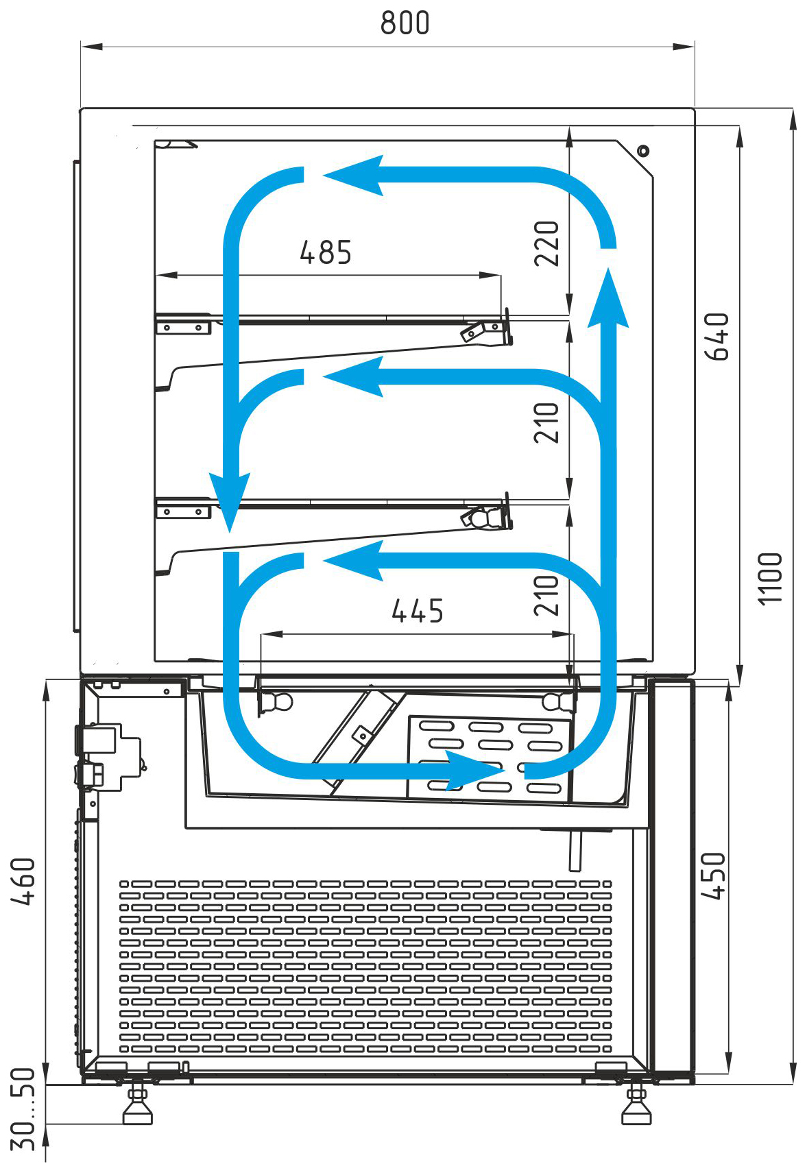 2 охлаждаемые полки с возможностью регулировки по высоте