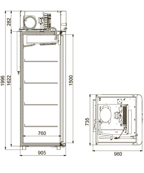 Каталог оборудования Холодильное оборудованиеШкафы холодильныеШкафы морозильные низкотемпературные до -18 °СШкаф морозильный Polair CB107-Sm Alu Шкаф морозильный Polair CB107-Sm Alu Код товара: 062-592 Поделиться: WhatsAppTelegram СравнитьДобавить в КПВ избранное 0 151 662 ₽ В корзину 0 шт Под заказСамовывоз сегодня бесплатно Взять в кредит Купить в лизинг Получить консультацию в WhatsApp Описание Характеристики Отзывы 0 Инструкции 4 Шкаф морозильный Polair CB107-Sm Alu предназначен для демонстрации и надежного хранения продуктов на предприятиях общественного питания и торговли. Цельнозаливной корпус выполнен из стали с полимерным покрытием и дополнен алюминиевыми профилями, что обеспечивает высокую механическую прочность и долговечность конструкции. Алюминиевые элементы дверей и верхней панели подчеркивают современный и премиальный дизайн. Шкаф стабильно работает при температуре окружающей среды до +40 °С и относительной влажности воздуха до 80%, сохраняя продукты в оптимальных условиях. Основные особенности: Электронный блок управления с жидкокристаллическим дисплеем Верхнее расположение агрегата, обеспечивающее удобный доступ к внутреннему объему Клапан Шредера для обслуживания системы охлаждения Компенсационный клапан с ПЭНом обогрева для предотвращения перепадов давления ПЭН обогрева трубки слива конденсата и ПЭН обогрева дверного проема для защиты от наледи Распашной тип дверей с возможностью изменения стороны открывания Интегрированные ручки, встроенные в алюминиевые профили дверей Эластичные уплотнители с магнитными вставками, обеспечивающие максимальную герметизацию Встроенная внутренняя подсветка для удобного обзора содержимого Микропереключатель, отключающий вентилятор и включающий подсветку при открытии двери Регулируемые по высоте ножки и педаль для открывания двери, повышающие эргономику использования Замок для безопасного хранения продукции 4 полки формата GN 2/1 (530×650 мм) с допустимой нагрузкой до 40 кг Толщина теплоизоляции корпуса — 61 мм Изображение товара, представленного на фото, может отличаться от его фактического вида. Показать все Габаритные размеры735×945×1996 ммДиапазон рабочей температурыдо -18 °CДлина735 ммГлубина450 ммВысота1996 ммОбъём700 лМатериал корпусаНержавеющая сталь Тип управленияМеханическое Расход электроэнергии в сутки12 кВтКоличество полок2 штКоличество дверей1 штЗамокЕсть Тип двериМеталлическая Способ открыванияРаздвижные (купе) Напряжение220 ВХладагентR290 Расположение агрегатаНижнее Габариты в упаковке850×988×2160 ммВес нетто128 кгВес брутто152 кгБрендPolair Оставить отзыв Еще никто не оставил отзыв на этот товар Схема POLAIR CB107-Sm.jpgИнструкция на POLAIR CB107-Sm.pdfСертификат соответствия.pdfДекларация о соответствии.pdf Похожие товары Перейти в каталог В наличии 313 817 ₽ Шкаф морозильный с глухой дверью TEFCOLD BF850 нержавеющий под противни 600Х400/800ММ В наличии 151 494 ₽ Шкаф морозильный с глухой дверью TEFCOLD UF400S нержавеющий Под заказ 210 203 ₽ Шкаф морозильный Polair DB114-S без канапе В наличии 243 456 ₽ Шкаф морозильный с глухой дверью TEFCOLD GUF70 нержавеющий В наличии 155 668 ₽ Шкаф морозильный Polair CB107-Gm Под заказ 235 290 ₽ Шкаф морозильный Polair CB114-Gm В наличии 166 301 ₽ Шкаф морозильный МХМ Капри 1,5НВ Под заказ 152 694 ₽ Шкаф морозильный Полюс Carboma F700 INOX С этим товаром покупают Под заказ 217 182 ₽ Витрина холодильная универсальная Premier Куба-250 (-6…+6) Под заказ 116 553 