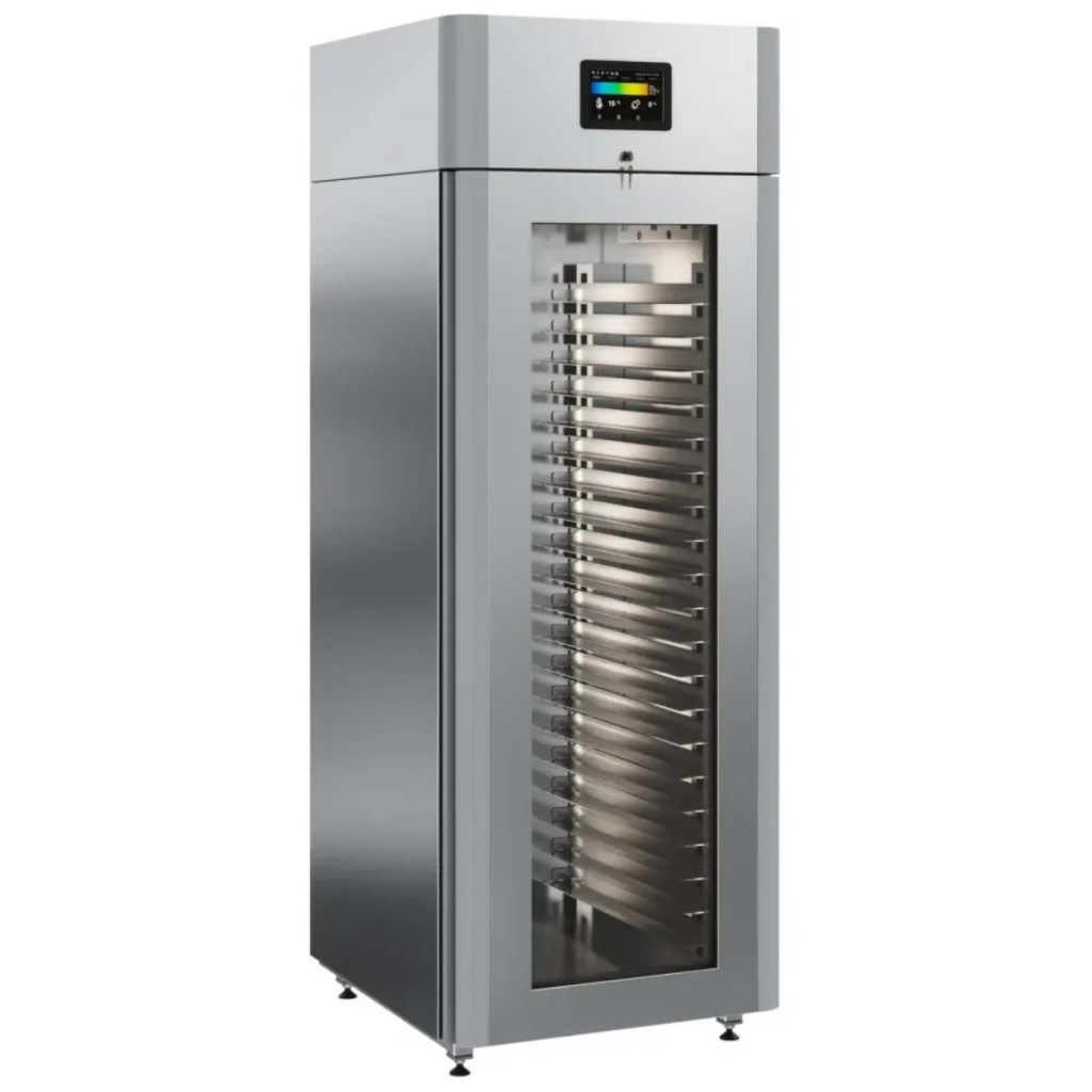 Каталог оборудования Холодильное оборудованиеШкафы холодильныеСпециализированные холодильные шкафыШкаф холодильный для хлебопекарных производств Polair CS107-Bakery Br со стеклом (Тип 2) Шкаф холодильный для хлебопекарных производств Polair CS107-Bakery Br со стеклом (Тип 2) Код товара: 062-623 Поделиться: WhatsAppTelegram СравнитьДобавить в КПВ избранное 0 419 900 ₽ В корзину 0 шт Под заказСамовывоз сегодня бесплатно Взять в кредит Купить в лизинг Получить консультацию в WhatsApp Описание Характеристики Отзывы 0 Инструкции 5 Шкаф холодильный для хлебопекарных производств Polair CS107-Bakery Br со стеклом (Тип 2) предназначен для создания оптимальных условий хранения и расстойки заготовок из теста на предприятиях общественного питания и торговли. Корпус цельнозаливной, выполнен из нержавеющей стали, дверь — стеклопакет. Оборудование стабильно работает при температуре окружающей среды до +40 °C. В комплект входят 20 пар направляющих размером 400×600 мм. Особенности: Многофункциональные режимы: охлаждение тестовых заготовок, замедление ферментации, хранение, регенерация, брожение и расстойка Динамическое охлаждение с мягким обдувом без заветривания и автоматическая оттайка с системой испарения конденсата Панель управления с 7" дисплеем: контроль температуры, влажности (регулируется от 60 до 95 %), скорости вентилятора и времени, возможность создания и сохранения собственных программ Встроенный ультразвуковой увлажнитель (требуется подключение к системе водоочистки и канализации) Эргономичная конструкция: верхнее расположение агрегата, распашная дверь со стеклопакетом и механизмом самозакрывания, педаль для удобного открытия, съёмные направляющие и легко заменяемый уплотнитель с магнитной вставкой Простота ухода: штампованное углубление в дне корпуса для сбора загрязнений Экологичный хладагент R290 Энергоэффективность: потребляемая мощность — 0,55 кВт (охлаждение), 0,9 кВт (нагрев) Толщина стенки корпуса — 43 мм Polair CS107-Bakery Br со стеклом (Тип 2) — современный шкаф отложенной расстойки, обеспечивающий полный контроль и гибкость при работе с тестовыми заготовками. Благодаря многофункциональным режимам, точной настройке параметров и продуманной конструкции, он становится надёжным решением для пекарен и кондитерских, стремящихся к высокому качеству продукции и удобству в эксплуатации.Изображение товара, представленного на фото, может отличаться от его фактического вида. Показать все Габаритные размеры697×1005×1960 ммДиапазон рабочей температурыот -10 до +40 °CДлина697 ммШирина1005 ммВысота1960 ммОбъём700 лКол-во дверей1 Тип двериСтеклянная Уровень влажностиот 60 до 95 %Направляющие под EN 40*6020 Расстояние между направляющими60 ммХолодильный агрегатВстроенный Тип оттайкиАвтоматическая Тип охлажденияДинамический ПодсветкаЕсть ХладагентR290 Вес нетто180 кгВес брутто205 кгБрендPolairВсе специализированные холодильные шкафы Из нержавейки Оставить отзыв Еще никто не оставил отзыв на этот товар Схема POLAIR CS107 Bakery Br.jpgИнструкция на POLAIR CS107 Bakery Br.pdfБрошюра на хлебопекарное оборудование POLAIR.pdfДекларация о соответствии.pdfСертификат соответствия.pdf Похожие товары Перейти в каталог Под заказ 405 450 ₽ Шкаф холодильный для хлебопекарных производств Polair CS107 Bakery Br черный, со стеклом (Тип 1) Под заказ 419 900 ₽ Шкаф холодильный для хлебопекарных производств Polair CS107-Bakery Br со стеклом (Тип 2) Под заказ 389 300 ₽ Шкаф х