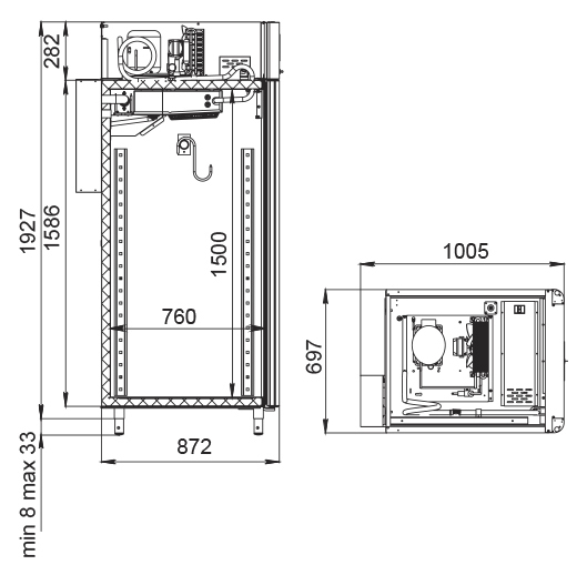 Каталог оборудования Холодильное оборудованиеШкафы холодильныеСпециализированные холодильные шкафыШкаф холодильный для вызревания сыра Polair CS107 Cheese полки окраш. Шкаф холодильный для вызревания сыра Polair CS107 Cheese полки окраш. Код товара: 062-635 Поделиться: WhatsAppTelegram СравнитьДобавить в КПВ избранное 0 385 475 ₽ В корзину 0 шт Под заказСамовывоз сегодня бесплатно Взять в кредит Купить в лизинг Получить консультацию в WhatsApp Описание Характеристики Отзывы 0 Инструкции 5 Шкаф холодильный для вызревания сыра Polair CS107 Cheese полки окраш. предназначен для создания оптимальных условий хранения и дозревания твердых и полутвердых сыров на предприятиях общественного питания и торговли. Монолитный цельнозаливной корпус изготовлен из нержавеющей стали снаружи и изнутри (за исключением задней стенки), что гарантирует высокую прочность и долговечность оборудования. Шкаф рассчитан на работу при температуре окружающей среды до 40 °С. Особенности: Верхнее расположение агрегата Многофункциональная русифицированная контрольная панель с 5-дюймовым дисплеем Возможность создания и сохранения собственных программ в памяти электронного блока Четыре сетчатые полки из окрашенной стали Встроенный ультразвуковой увлажнитель (требуется подключение к системе очищенной воды и централизованной канализации) Распашная дверь с заливной теплоизоляцией Заменяемый уплотнитель двери с магнитной вставкой Встроенная ручка для удобного открытия Отключаемая внутренняя LED-подсветка Штампованное углубление в дне корпуса для удобства ухода и очистки Надежный замок Педаль для бесконтактного открывания двери Регулировка уровня влажности от 60% до 95% Максимальная нагрузка на каждую полку — 40 кг Толщина стенки корпуса — 43 мм Polair CS107 Cheese полки окраш. — это надежное и функциональное оборудование для хранения и дозревания сыров, обеспечивающее точный контроль температуры и влажности. Прочный корпус и современный набор функций делают этот шкаф идеальным выбором для предприятий общественного питания и торговли, стремящихся поддерживать качество сырной продукции на высоком уровне.Изображение товара, представленного на фото, может отличаться от его фактического вида. Показать все Габаритные размеры697×1005×1960 ммДиапазон рабочей температурыот -2 до +30 °CДлина697 ммШирина1005 ммВысота1960 ммОбъём700 лКол-во дверей1 Тип двериМеталлическая Количество полок4 штДопустимая нагрузка на полку40 кгУровень влажностиот 60 до 95 %Холодильный агрегатВстроенный Тип оттайкиАвтоматическая Тип охлажденияДинамическое ПодсветкаЕсть ХладагентR290 Вес нетто144 кгВес брутто171 кгБрендPolairВсе специализированные холодильные шкафы Из нержавейки Оставить отзыв Еще никто не оставил отзыв на этот товар Схема POLAIR CS107 Cheese.jpgИнструкция на POLAIR CS107 Cheese.pdfБрошюра на POLAIR CS107 Cheese.pdfДекларация о соответствии.pdfСертификат соответствия.pdf Похожие товары Перейти в каталог Под заказ 392 700 ₽ Шкаф холодильный для вызревания мяса Polair CS107 Meat черный, со стеклом (Тип 2) Под заказ 397 800 ₽ Шкаф холодильный для вызревания сыра Polair CS107 Cheese полки нерж., со стеклом Под заказ 252 314 ₽ Шкаф холодильный для вызревания мяса и сыра Carboma M700GN-1-G-MHC 9005 В наличии 403 670 ₽ Шкаф холодильный для хлебопекарных производств Polair CS107 Bakery Br (Тип 2) Под заказ 385 475 ₽ Шкаф холодильный для вызревания сыра Polair CS107 Cheese полки окраш. Под заказ 118 831 ₽ Шкаф холодильный HURAKAN HKN