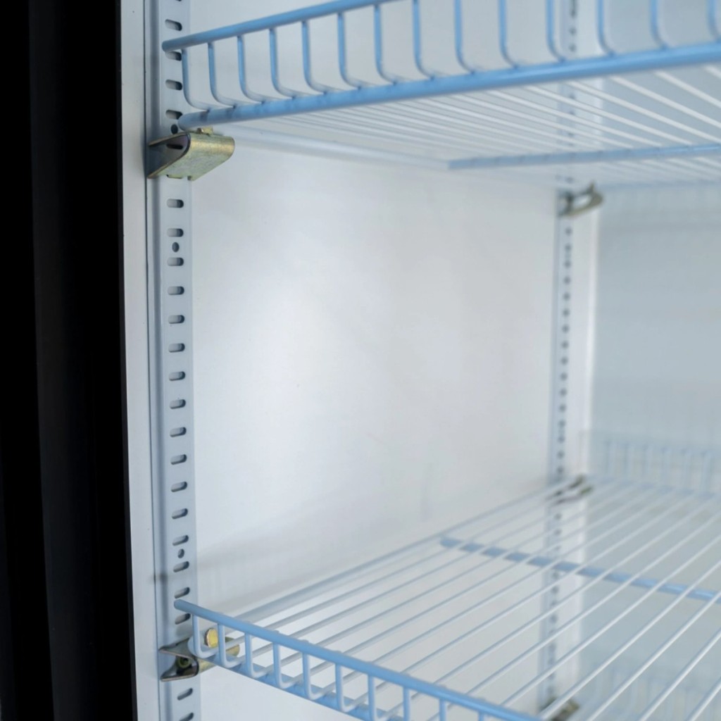 Каталог оборудования Холодильное оборудованиеШкафы холодильныеШкафы холодильные среднетемпературные от 0 до +5 °СШкаф холодильный Ангара 1000 КБК Шкаф холодильный Ангара 1000 КБК Код товара: 066-396 Поделиться: WhatsAppTelegram СравнитьДобавить в КПВ избранное 0 101 244 ₽ В корзину 0 шт Под заказСамовывоз сегодня бесплатно Взять в кредит Купить в лизинг Получить консультацию в WhatsApp Описание Характеристики Отзывы 0 Шкаф холодильный Ангара 1000 КБК предназначен для кратковременного хранения, демонстрации и продажи предварительно охлаждённых пищевых продуктов и напитков. Нижнее расположение агрегата обеспечивает высокую видимость товара: выкладка поднята выше, благодаря чему даже нижние полки остаются на виду, что выгодно с точки зрения мерчендайзинга. Шкаф отличается высокой теплоизоляцией, эффективной системой динамического охлаждения и удобством эксплуатации. Использование светодиодной подсветки обеспечивает яркое освещение товаров, долгий срок службы и низкое энергопотребление. Внимание! На фото показана аналогичная модель с 10 полками. Особенности модели: Корпус из окрашенной оцинкованной стали с пенополиуретановым заполнением — прочность и отличная теплоизоляция. Электронный блок управления Advance / Elitech ETC-974 (2 датчика, усиленное реле) — точная индикация температуры и контроль работы. Режим автоматического размораживания и автоматическое выпаривание талой воды — упрощают обслуживание. Компрессор Danfoss Secop или Embraco Aspera — надёжная и эффективная работа. Заправочный клапан Шредера — удобство сервисного обслуживания. Герметичный внутренний объем — эластичный дверной уплотнитель из ПВХ с магнитной вставкой обеспечивает плотное закрытие. Динамическое охлаждение и обдуваемые конденсаторы — равномерное охлаждение всего объёма. Светодиодная подсветка внутреннего объёма — яркая, энергоэффективная и долговечная. Экологичный хладагент R-404a — нетоксичный, без содержания брома и хлора. Испаритель SEST LUVE (Италия) — высокоэффективный теплообменник. Количество полок: 8 + нижняя часть холодильника, нагрузка на полку 40 кг. Толщина стенок: 50 мм (пенополиуретан) — повышенная теплоизоляция. Способ оттайки: естественные теплопритоки. Двери: 2 стеклянные раздвижные купе — удобный обзор товара и экономия пространства. Холодильный шкаф Ангара 1000 КБК — надёжное и удобное решение для хранения и демонстрации охлаждённых продуктов. Продуманная конструкция, динамическое охлаждение, светодиодная подсветка и естественная оттайка обеспечивают сохранность товаров, удобство эксплуатации и эффективную выкладку продукции на предприятиях торговли и общественного питания.Изображение товара, представленного на фото, может отличаться от его фактического вида. Показать все Габаритные размеры1280×630×2050 ммДиапазон рабочей температурыот 0 до +7 °CДлина1280 ммГлубина630 ммВысота2050 ммПолезный объем960 лОбъём1000 лНапряжение220 ВПотребляемая мощность0,22 кВтТип оттайкиАвтоматическая Тип охлажденияДинамическое Тип управленияЭлектронное Материал корпусаОкрашенная сталь Тип двериСтеклянная Способ открыванияДвери купе Количество полок8 штКоличество дверей2 штЗамокНет ПодсветкаЕсть Размер полки540×450 ммДопустимая нагрузка на полку40 кгХладагентR404а Климатический классSN (+10...+32) Холодильный агрегатВстроенный Расположение агрегатаНижнее Температура окружающей с