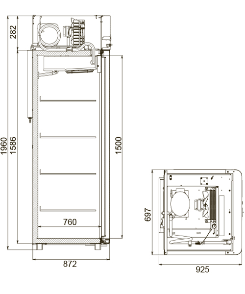 Каталог оборудования Холодильное оборудованиеШкафы холодильныеШкафы холодильные универсальные от -5 до +5 °СШкаф холодильный универсальный Polair CV107-Sm Alu Шкаф холодильный универсальный Polair CV107-Sm Alu Код товара: 062-611 Поделиться: WhatsAppTelegram СравнитьДобавить в КПВ избранное 0 129 370 ₽ В корзину 0 шт Под заказСамовывоз сегодня бесплатно Взять в кредит Купить в лизинг Получить консультацию в WhatsApp Описание Характеристики Отзывы 0 Инструкции 4 Шкаф холодильный универсальный Polair CV107-Sm Alu предназначен для демонстрации и надежного хранения продуктов на предприятиях общественного питания и торговли. Цельнозаливной корпус выполнен из стали с полимерным покрытием и оснащен алюминиевыми профилями, что обеспечивает высокую прочность конструкции и долговечность, а также подчеркивает современный премиальный дизайн. Шкаф работает при температуре окружающей среды до 40 °С и влажности воздуха до 80%. Особенности модели: Контрольная панель с быстрым доступом к настройкам, удобным возвратом в предыдущее меню и возможностью полного отключения без отдельной кнопки. Жидкокристаллический дисплей для наглядного отображения параметров. Клапан Шредера для обслуживания холодильной системы. Компенсационный клапан с ПЭНом обогрева, ПЭНы обогрева трубки слива конденсата и дверного проема — предотвращают образование льда и обеспечивают надежную работу. Распашной тип двери с возможностью изменения стороны открывания, что делает установку более гибкой. Полностью интегрированные ручки, удобные и стильные. Эластичные уплотнители с магнитными вставками для максимальной герметизации. Внутренняя подсветка вынесена на нижнюю часть фронтальной панели. Микропереключатель для автоматического отключения вентилятора и включения подсветки при открытии дверей. Регулируемые по высоте ножки для устойчивости на любом полу. Педаль для удобного открывания без рук. Замок для защиты содержимого. Высокая допустимая нагрузка на полку — до 40 кг. Размер полки: GN 2/1 (530×650 мм). Толщина стенки корпуса — 43 мм, что обеспечивает отличную теплоизоляцию. Polair CV107-Sm Alu — это функциональный и надежный холодильный шкаф с современным дизайном, который обеспечивает максимальную сохранность и удобный доступ к продуктам. Отлично подходит для ресторанов, кафе и магазинов, где важны надежность, стиль и энергоэффективность.Изображение товара, представленного на фото, может отличаться от его фактического вида. Показать все Габаритные размеры697×925×1960 ммДиапазон рабочей температурыот -5 до +5 °CДлина697 ммГлубина925 ммВысота1960 ммОбъём700 лРазмер полки530×650 ммКоличество полок4 штКоличество дверей1 штТип оттайкиАвтоматическая Тип охлажденияДинамическое Тип управленияЭлектронное Материал корпусаНержавеющая сталь Тип двериМеталлическая ЗамокЕсть Способ открыванияРаспашные ХладагентR290 Холодильный агрегатВстроенный Расположение агрегатаВерхнее Потребление электроэнергии в сутки4,5 кВтПотребляемая мощность0,4 кВтНапряжение220 ВГабариты в упаковке800×1000×2150 ммВес нетто113 кгВес брутто138 кгБрендPolairВсе шкафы холодильные универсальные от -5 до +5 °С Из нержавейки Оставить отзыв Еще никто не оставил отзыв на этот товар Схема POLAIR CV107-Sm.jpgИнструкция на POLAIR CV107-Sm.pdfДекларация о соответствии.pdfСертификат соответствия.pdf Похожие товары Перейти в каталог Под заказ 161 340 ₽ Шкаф холодильный Abat ШХ-1,0 Под заказ 2