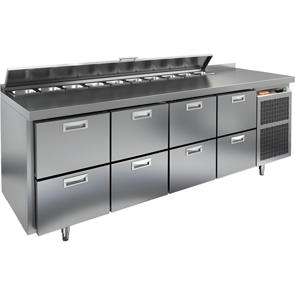 Каталог оборудования Холодильное оборудованиеСтолы охлаждаемыеСтолы холодильные для салатовСтол холодильный для салатов HiCold SL1-2222GN (1/3) с крышкой Стол холодильный для салатов HiCold SL1-2222GN (1/3) с крышкой Код товара: 064-840 Поделиться: WhatsAppTelegram СравнитьДобавить в КПВ избранное 0 320 392 ₽ В корзину 0 шт Под заказСамовывоз сегодня бесплатно Взять в кредит Купить в лизинг Получить консультацию в WhatsApp Описание Характеристики Отзывы 0 Инструкции 2 Стол холодильный для салатов HiCold SL1-2222GN (1/3) с крышкой предназначен для использования на предприятиях общественного питания и торговли. Он подходит для хранения, обработки и кратковременного охлаждения ингредиентов, применяемых при приготовлении пиццы, салатов, закусок и других блюд. Модель совмещает охлаждаемый объем и рабочую поверхность, что значительно повышает удобство и скорость работы персонала. Корпус и столешница выполнены из прочной и гигиеничной нержавеющей стали, устойчивой к влаге, загрязнениям и механическим повреждениям. Металлическая крышка защищает продукты от загрязнений и сохраняет их свежесть. Особенности модели: Электронная панель управления — точная настройка температуры. Салат-бар на 10 гастроемкостей — быстрый доступ к ингредиентам. 8 выдвижных ящика — удобное размещение продуктов. Съёмные магнитные уплотнители — герметичность и стабильная температура. Открытая агрегатная часть — лёгкое обслуживание. Регулируемые ножки — установка на любой поверхности. Глубина гастроемкостей до 150 мм, столешница и теплоизоляция — 50 мм. Высота борта — 50 мм — защита рабочей поверхности. HiCold SL1-2222GN (1/3) с крышкой — универсальное и функциональное решение для профессиональной кухни, позволяющее оптимизировать рабочие процессы и повысить производительность за счет удобного хранения и быстрого доступа к ингредиентам.Изображение товара, представленного на фото, может отличаться от его фактического вида. Показать все Габаритные размеры2280×700×850 ммДиапазон рабочей температурыот +2 до +10 °CРасположение агрегатаБоковое Материал столешницыНержавеющая Тип столаС ящиками Объём660 лТип гастроемкостейGN 1/3 Количество ящиков8 штРазмер полки530×325 ммНапряжение220 ВМощность0,48 кВтТип охлажденияДинамическое Тип оттайкиАвтоматическая СтолешницаС бортом Габариты в упаковке2420×850×1000 ммВес нетто145 кгВес брутто211 кгБрендHicold Оставить отзыв Еще никто не оставил отзыв на этот товар Паспорт на HICOLD SL1-2222GN.pdfДекларация о соответствии.pdf Ранее просмотрено Под заказ 140 482 ₽ Стол холодильный для салатов HiCold SL2-11GN (1/6) О без крышки Под заказ 170 901 ₽ Стол холодильный для салатов HiCold SLE3-111GN полипропилен, без крышки
