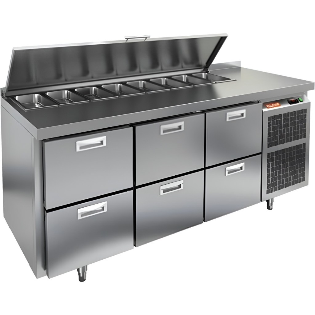 Стол холодильный для салатов HiCold SL2-222GN (1/6) с крышкой предназначен для использования на предприятиях общественного питания и торговли. Он подходит для хранения, обработки и кратковременного охлаждения ингредиентов, применяемых при приготовлении пиццы, салатов, закусок и других блюд.