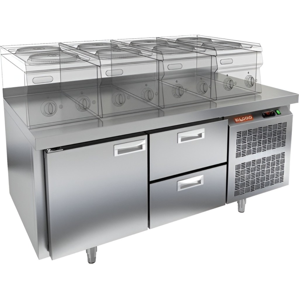Каталог оборудования Холодильное оборудованиеСтолы охлаждаемыеСтолы холодильные под тепловое оборудованиеСтол охлаждаемый HiCold GN 12/TN LT SH О под тепловое оборудование Стол охлаждаемый HiCold GN 12/TN LT SH О под тепловое оборудование Код товара: 065-293 Поделиться: WhatsAppTelegram СравнитьДобавить в КПВ избранное 0 140 211 ₽ В корзину 0 шт Под заказСамовывоз сегодня бесплатно Взять в кредит Купить в лизинг Получить консультацию в WhatsApp Описание Характеристики Отзывы 0 Инструкции 2 Стол охлаждаемый HiCold GN 12/TN LT SH О под тепловое оборудование предназначен для обработки ингредиентов и временного хранения скоропортящихся продуктов и напитков на предприятиях общественного питания и торговли. Устройство совмещает функции рабочей поверхности и холодильной камеры. Столешница рассчитана на установку теплового оборудования: под рабочей поверхностью встроен ДСП-лист, который укрепляет конструкцию и препятствует проникновению тепла внутрь. Такое решение обеспечивает дополнительную жесткость, позволяет рационально использовать рабочее пространство и повышает эффективность работы на кухне. Внимание! На фото показан стол с бортом. Данная модель поставляется без борта. Особенности: 1 распашная дверь и 2 выдвижные секции — удобный доступ к хранимым продуктам. Автоматические доводчики дверей с фиксатором открытого положения повышают эргономику и способствуют сохранению холода. Легкозаменяемые магнитные уплотнители обеспечивают плотное прилегание дверей и лёгкость в обслуживании. Открытая агрегатная часть упрощает доступ к компрессору при техническом обслуживании. Конструкция на низких ножках обеспечивает стабильность и удобство эксплуатации. Толщина столешницы без борта — 50 мм обеспечивает прочность рабочей поверхности. Толщина теплоизоляции — 50 мм способствует энергоэффективности и стабильному температурному режиму. HiCold GN 12/TN LT SH О — это надёжное и удобное оборудование, сочетающее охлаждение и рабочее пространство. Благодаря продуманной конструкции и совместимости с гастроемкостями GN 1/1, стол станет практичным решением для кухни любого профессионального уровня.Изображение товара, представленного на фото, может отличаться от его фактического вида. Показать все Габаритные размеры1390×700×610 ммДиапазон рабочей температурыот -2 до +10 °CМатериал столешницыНержавеющая Расположение агрегатаБоковое Объём255 лТип столаС дверьми и ящиками Тип двериГлухая Количество дверей1 штКоличество ящиков2 штРазмер полки530×325 ммНапряжение220 ВМощность0,22 кВтТип охлажденияДинамический Тип оттайкиАвтоматическая СтолешницаБез борта Габариты в упаковке1550×850×850 ммВес нетто128 кгВес брутто148 кгБрендHicold Оставить отзыв Еще никто не оставил отзыв на этот товар Паспорт на HICOLD GN 12TN LT SH О.pdfДекларация о соответствии.pdf Похожие товары Перейти в каталог В наличии 77 661 ₽ Стол холодильный среднетемпературный HiCold GN 11/TN W Под заказ 125 670 ₽ Стол холодильный среднетемпературный Abat СХС-70-01 с бортом (дверь, дверь) С этим товаром покупают В наличии 201 690 ₽ Шкаф морозильный Полюс Carboma F1400 В наличии 195 030 ₽ Плита индукционная Аbat КИП-47Н Ранее просмотрено В наличии 311 378 ₽ Шкаф шоковой заморозки COOLEQ CQF-13 Под заказ 169 101 ₽ Стол охлаждаемый HiCold GN 1111/TN LT под тепловое оборудование, замок (2)