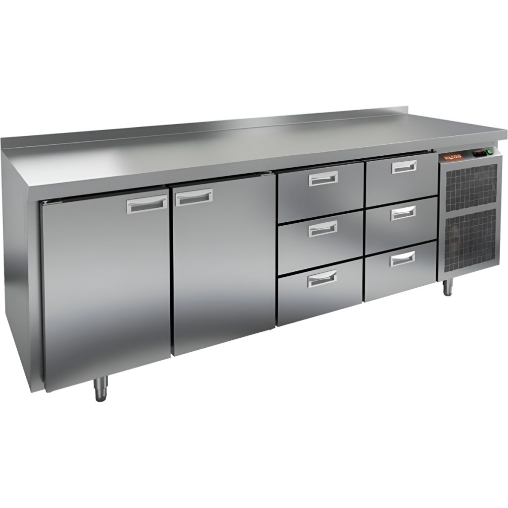 Каталог оборудования Холодильное оборудованиеСтолы охлаждаемыеСтолы холодильные среднетемпературныеСтол холодильный среднетемпературный HiCold GN 1133/TN Стол холодильный среднетемпературный HiCold GN 1133/TN Код товара: 001-334 Поделиться: WhatsAppTelegram СравнитьДобавить в КПВ избранное 0 259 192 ₽ В корзину 0 шт Под заказСамовывоз сегодня бесплатно Взять в кредит Купить в лизинг Получить консультацию в WhatsApp Описание Характеристики Отзывы 0 Инструкции 1 Стол холодильный среднетемпературный HiCold GN 1133/TN предназначен для обработки ингредиентов и кратковременного хранения скоропортящихся продуктов и напитков на предприятиях общественного питания и торговли. Модель оснащена удобной электронной панелью управления. Корпус и столешница выполнены из прочной и гигиеничной нержавеющей стали. В комплект входят 2 полки для размещения продуктов. Особенности: 2 распашные двери обеспечивают быстрый и удобный доступ к охлаждаемому отделению. 6 выдвижных секций позволяют рационально организовать внутреннее пространство и ускорить доступ к ингредиентам. Автоматические доводчики дверей с фиксатором открытого положения повышают комфорт при эксплуатации. Легкозаменяемые магнитные уплотнители обеспечивают надёжную герметичность и упрощают техническое обслуживание. Регулируемые по высоте ножки дают возможность выровнять стол на неровной поверхности. Толщина столешницы — 50 мм, что делает её устойчивой к механическим нагрузкам. Высота борта — 50 мм предотвращает скатывание продуктов и жидкостей с поверхности. Толщина теплоизоляции — 50 мм, что способствует поддержанию стабильной температуры и снижению энергозатрат. Диапазон температуры окружающего воздуха — от 12 до 37 °C, что делает модель универсальной для различных условий эксплуатации. HiCold GN 1133/TN — это практичный и надёжный холодильный стол, сочетающий удобство работы, продуманную организацию внутреннего пространства и высокую энергоэффективность. Идеально подходит для профессиональных кухонь.Изображение товара, представленного на фото, может отличаться от его фактического вида. Показать все Габаритные размеры2280×700×850 ммДиапазон рабочей температурыот -2 до +10 °CРасположение агрегатаБоковое Материал столешницыНержавеющая Тип столаС дверьми и ящиками Тип двериГлухая Объём660 лКоличество дверей2 штКоличество полок2 штКоличество ящиков6 штРазмер полки530×325 ммНапряжение220 ВМощность0,48 кВтТип охлажденияДинамический Тип оттайкиАвтоматическая СтолешницаС бортом Вес нетто212 кгВес брутто236 кгБрендHicoldВсе холодильные столы HicoldВсе нержавеющие холодильные столы Все холодильные столы с бортом Оставить отзыв Еще никто не оставил отзыв на этот товар Паспорт на HICOLD GN 1133/TN.pdf Похожие товары Перейти в каталог В наличии 139 401 ₽ Стол холодильный среднетемпературный HiCold GN 1111 BR2 TN В наличии 113 121 ₽ Стол холодильный среднетемпературный HiCold GN 1111/TN W Под заказ 148 851 ₽ Стол холодильный среднетемпературный HiCold SN 1111/TN W В наличии 139 583 ₽ Стол холодильный среднетемпературный Cooleq GN4200TN с бортом С этим товаром покупают Под заказ 203 827 ₽ Шкаф морозильный Abat ШХн-1,4 Ранее просмотрено В наличии 175 894 ₽ Моноблок холодильный низкотемпературный Polair MB214T Под заказ 127 044 ₽ Сплит-система холодильная низкотемпературная Север BGSF 112 S L7