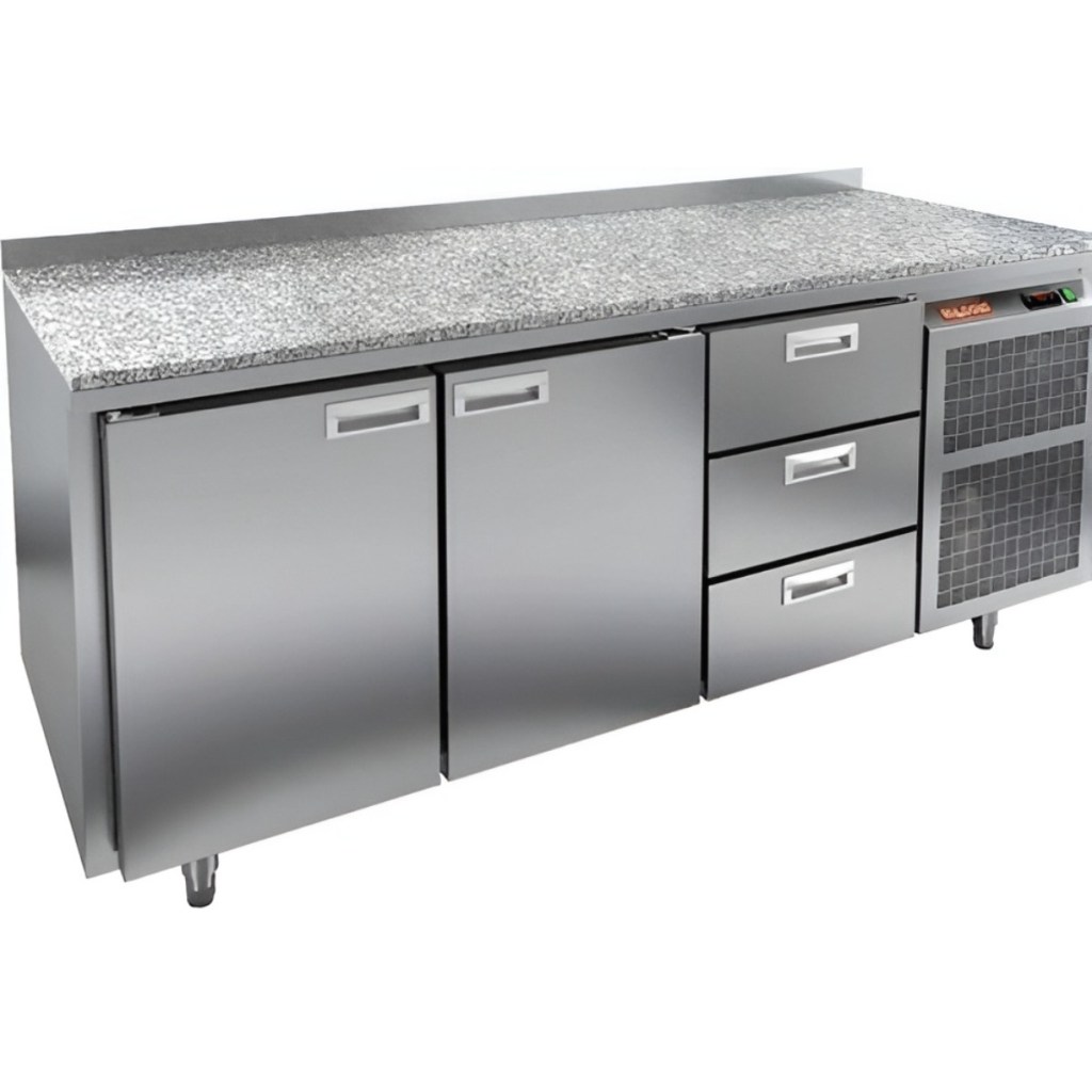 Каталог оборудования Холодильное оборудованиеСтолы охлаждаемыеСтолы холодильные среднетемпературныеСтол холодильный среднетемпературный HiCold GN 113/TN М камень Стол холодильный среднетемпературный HiCold GN 113/TN М камень Код товара: 065-287 Поделиться: WhatsAppTelegram СравнитьДобавить в КПВ избранное 0 260 344 ₽ В корзину 0 шт Под заказСамовывоз сегодня бесплатно Взять в кредит Купить в лизинг Получить консультацию в WhatsApp Описание Характеристики Отзывы 0 Инструкции 2 Стол холодильный среднетемпературный HiCold GN 113/TN М камень предназначен для обработки ингредиентов и кратковременного хранения скоропортящихся продуктов и напитков на предприятиях общественного питания и торговли. Модель оснащена удобной электронной панелью управления. Корпус выполнен из нержавеющей стали, а столешница из гранита, что обеспечивает прочность, высокую износостойкость и гигиеничность. В комплект входят 2 полки для удобного размещения продуктов. Особенности: 2 распашные двери — удобный доступ к продуктам. 3 выдвижные секции — эффективная организация рабочего пространства. Автоматические доводчики дверей с фиксатором открытого положения — комфортная эксплуатация. Легкозаменяемые магнитные уплотнители — надежная герметичность и простое обслуживание. Колёса (2 со стопором, 2 без стопора) — обеспечивают мобильность и удобство размещения стола на кухне. Столешница из гранита, толщина 50 мм — прочная и устойчивая к нагрузкам рабочая поверхность. Толщина теплоизоляции 50 мм — эффективное сохранение температуры. Рабочая температура окружающего воздуха: от +12 до +37 °C. HiCold GN 113/TN М камень — практичное и надежное решение для профессиональных кухонь с гранитной столешницей. Он сочетает удобство использования, прочные материалы и эффективное хранение продуктов, идеально подходя для интенсивной Изображение товара, представленного на фото, может отличаться от его фактического вида. Показать все Габаритные размеры1835×700×850 ммДиапазон рабочей температурыот -2 до +10 °CРасположение агрегатаБоковое Материал столешницыГранитная Тип столаС дверьми и ящиками Тип двериГлухая Объём505 лКоличество дверей2 штКоличество полок2 штКоличество ящиков3 штРазмер полки530×325 ммНапряжение220 ВТип охлажденияДинамический Тип оттайкиАвтоматическая СтолешницаС бортом Габариты в упаковке2000×850×1000 ммВес нетто180 кгВес брутто233 кгБрендHicoldВсе холодильные столы HicoldВсе нержавеющие холодильные столы Все холодильные столы с бортом Оставить отзыв Еще никто не оставил отзыв на этот товар Паспорт на HICOLD GN 113 TN М.pdfДекларация о соответствии.pdf Похожие товары Перейти в каталог В наличии 103 579 ₽ Стол холодильный среднетемпературный Cooleq GN3200TN с бортом Под заказ 117 266 ₽ Стол холодильный среднетемпературный HURAKAN HKN-GN4TN С этим товаром покупают В наличии 145 350 ₽ Шкаф холодильный Polair СМ 110-G В наличии 53 559 ₽ Витрина холодильная для ингредиентов HICOLD VRTU 1390 1/3