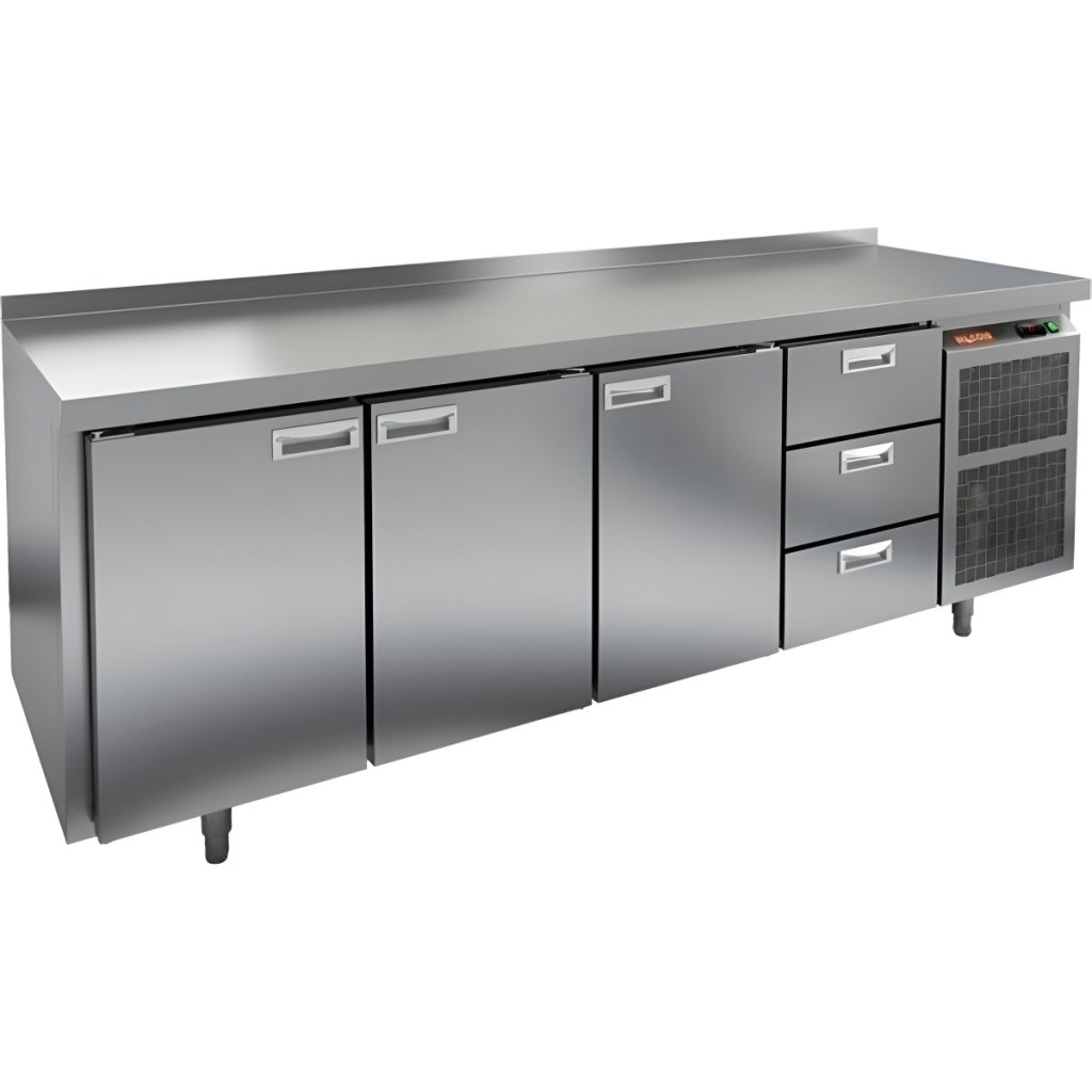 Каталог оборудования Холодильное оборудованиеСтолы охлаждаемыеСтолы холодильные среднетемпературныеСтол холодильный среднетемпературный HiCold SN 1113/TN Стол холодильный среднетемпературный HiCold SN 1113/TN Код товара: 001-329 Поделиться: WhatsAppTelegram СравнитьДобавить в КПВ избранное 0 212 841 ₽ В корзину 0 шт Под заказСамовывоз сегодня бесплатно Взять в кредит Купить в лизинг Получить консультацию в WhatsApp Описание Характеристики Отзывы 0 Инструкции 2 Стол холодильный среднетемпературный HiCold SN 1113/TN сочетает в себе рабочую поверхность для раскатывания теста и обработки ингредиентов, а также охлаждающую камеру для кратковременного хранения скоропортящихся продуктов и напитков. Оборудование предназначено для предприятий общественного питания и обеспечивает комфортную и эффективную работу на кухне. Особенности: Цельнозаливной корпус из нержавеющей стали с 50 мм теплоизоляцией, обеспечивающий высокую герметичность и жесткость конструкции. Надежный электронный блок управления с несколькими режимами оттаивания для удобства эксплуатации. Вентилятор повышенной мощности, обеспечивающий принудительную вентиляцию по всему объему стола и равномерное быстрое охлаждение. Интеллектуальное размораживание и термическое выпаривание конденсата для поддержания оптимальных условий внутри камеры. Новая экономичная модель компрессора, снижающая энергопотребление. Облегченный доступ к агрегату для удобства сервисного обслуживания. Двери с петлями-доводчиками, повышающими комфорт и безопасность при эксплуатации. Регулируемые по высоте ножки для адаптации к рабочей поверхности и неровностям пола. Максимальная нагрузка на полку — 50 кг. Высота борта — 50 мм для удобства и безопасности работы. Рабочая температура окружающего воздуха — от 12 до 37 °C. HiCold SN 1113/TN — это надежное, эргономичное и энергоэффективное решение для профессиональной кухни, сочетающее качественные материалы и современные технологии для оптимального хранения и подготовки продуктов.Изображение товара, представленного на фото, может отличаться от его фактического вида. Показать все Габаритные размеры2280×600×850 ммДиапазон рабочей температурыот -2 до +10 °CРасположение агрегатаБоковое Материал столешницыНержавеющая Тип столаС дверьми и ящиками Тип двериГлухая Объём570 лКоличество дверей3 штКоличество ящиков3 штНапряжение220 ВТип охлажденияДинамический Тип оттайкиАвтоматическая СтолешницаС бортом Вес нетто142 кгБрендHicoldВсе холодильные столы HicoldВсе оцинкованные холодильные столы Все холодильные столы с бортом Оставить отзыв Еще никто не оставил отзыв на этот товар Паспорт на HICOLD SN 1113/TN.pdfДекларация о соответствии.pdf Похожие товары Перейти в каталог Под заказ 197 541 ₽ Стол холодильный среднетемпературный HiCold SN 1112/TN Под заказ 258 741 ₽ Стол холодильный среднетемпературный HiCold SN 1133/TN В наличии 132 149 ₽ Стол холодильный среднетемпературный Cooleq GN4100TN С этим товаром покупают Под заказ 95 465 ₽ Жарочная поверхность Аbat АКО-80/1Н-С-02 Ранее просмотрено В наличии 197 091 ₽ Стол холодильный среднетемпературный HiCold BN 1112/TN