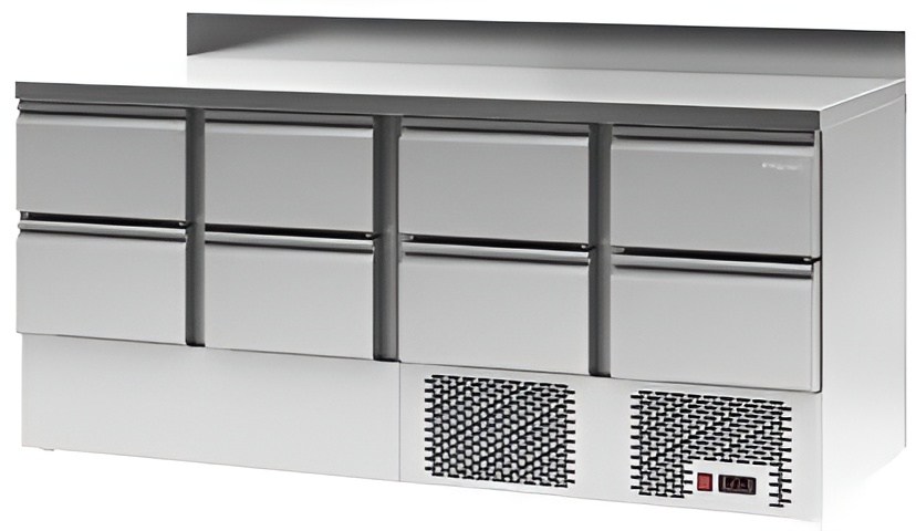 Каталог оборудования Холодильное оборудованиеСтолы охлаждаемыеСтолы холодильные среднетемпературныеСтол холодильный среднетемпературный Polair TMi4GN-2222-G Стол холодильный среднетемпературный Polair TMi4GN-2222-G Код товара: 062-578 Поделиться: WhatsAppTelegram СравнитьДобавить в КПВ избранное 0 265 574 ₽ В корзину 0 шт Под заказСамовывоз сегодня бесплатно Взять в кредит Купить в лизинг Получить консультацию в WhatsApp Описание Характеристики Отзывы 0 Стол холодильный среднетемпературный Polair TMi4GN-2222-G предназначен для хранения продуктов и подготовки ингредиентов на рабочей поверхности на предприятиях общественного питания и торговли. Цельнозаливные корпус и двери изготовлены из прочной стали, что обеспечивает высокую механическую прочность, надежную термоизоляцию, герметичность и долгий срок службы. Оборудование рассчитано на эксплуатацию при температуре окружающей среды до +43 °С и относительной влажности до 80%, что делает его отличным решением для профессиональных кухонь. Особенности: Электронный терморегулятор для точного и стабильного поддержания температуры; Класс защиты IP24, подходящий для работы в условиях повышенной влажности; Регулируемые по высоте ножки для удобства установки и устойчивости; Толщина столешницы — 40 мм, обеспечивающая прочность и устойчивость к нагрузкам; Толщина стенок корпуса — 43 мм для отличной теплоизоляции и долговечности; Тип полок: Gastronorm GN 1/1, удобный для использования стандартной гастроемкости; Оснащен 8 выдвижными ящиками, что значительно упрощает организацию хранения продуктов и обеспечивает быстрый доступ к ингредиентам. Polair TMi4GN-2222-G — это функциональный и надежный холодильный стол, который сочетает продуманную конструкцию с высокой вместимостью и удобством эксплуатации. Наличие восьми ящиков делает его особенно удобным для интенсивной работы на профессиональной кухне, где требуется быстрое и удобное хранение большого количества ингредиентов.Изображение товара, представленного на фото, может отличаться от его фактического вида. Показать все Габаритные размеры1850×700×910 ммДиапазон рабочей температурыот -2 до +10 °CРасположение агрегатаНижнее Материал столешницыНержавеющая Тип столаС ящиками Объём368 лКоличество ящиков8 штНапряжение220 ВМощность0,35 кВтТип охлажденияДинамическое Тип оттайкиАвтоматическая ХладагентR290 СтолешницаС бортом Габариты в упаковке2165×815×1045 ммВес нетто165 кгВес брутто200 кгБрендPolairВсе холодильные столы PolairВсе нержавеющие холодильные столы Все холодильные столы с бортом Оставить отзыв Еще никто не оставил отзыв на этот товар Ранее просмотрено Под заказ 162 473 ₽ Стол морозильный низкотемпературный Polair TBi2-22-G Под заказ 178 376 ₽ Стол морозильный низкотемпературный Polair TB3GN-002-G Под заказ 176 535 ₽ Стол холодильный среднетемпературный Polair TM3-220-G без борта В наличии 157 745 ₽ Плита индукционная Tatra TIR.87M (серия 700)