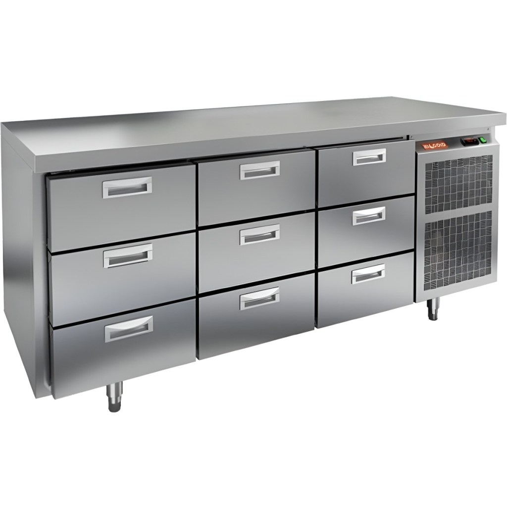 Каталог оборудования Холодильное оборудованиеСтолы охлаждаемыеСтолы морозильные низкотемпературныеСтол морозильный HiCold GN 333/BT О Стол морозильный HiCold GN 333/BT О Код товара: 065-154 Поделиться: WhatsAppTelegram СравнитьДобавить в КПВ избранное 0 312 652 ₽ В корзину 0 шт Под заказСамовывоз сегодня бесплатно Взять в кредит Купить в лизинг Получить консультацию в Max Описание Характеристики Отзывы 0 Инструкции 2 Стол морозильный HiCold GN 333/BT О — это удобное и функциональное оборудование для профессиональных кухонь. Он сочетает в себе полноценную рабочую поверхность, на которой можно раскатывать тесто, подготавливать ингредиенты и собирать блюда, и вместительную камеру для заморозки и хранения продуктов и полуфабрикатов. Подходит для ресторанов, кафе, столовых и других предприятий общественного питания. Особенности: Совместимость со стандартом GN — полки, направляющие и стойки адаптированы под гастроемкости. Прочный цельнозаливной корпус из нержавеющей стали с теплоизоляцией 50 мм — высокая герметичность, жёсткость и энергоэффективность. Столешница без борта для удобной работы с крупными и длинными заготовками. Электронный блок управления — надёжная работа и несколько режимов оттаивания. Мощный вентилятор и система принудительной вентиляции — быстрое и равномерное охлаждение. Интеллектуальная система размораживания и термическое выпаривание конденсата — снижение затрат на обслуживание. Новый экономичный компрессор — высокая производительность при низком энергопотреблении. Удобный доступ к агрегату — простота сервисного обслуживания. Ящики с плавным ходом и контурный электронагреватель (ПЭН) — удобный доступ к продуктам и защита от примерзания. Регулируемые по высоте ножки — устойчивость на любых поверхностях. Температурный диапазон эксплуатации: от +12 до +32 °C. HiCold GN 333/BT О — это современный морозильный стол, который объединяет рабочее место и надёжное хранение продуктов. Он обеспечивает стабильный холод, удобство в работе и энергоэффективность, что делает его оптимальным решением для интенсивной эксплуатации на профессиональной кухне. Изображение товара, представленного на фото, может отличаться от его фактического вида. Показать все Габаритные размеры1835×700×850 ммДиапазон рабочей температурыот -18 до -10 °CРасположение агрегатаБоковое Материал столешницыНержавеющая Тип столаС ящиками Объём505 лКоличество ящиков9 штНапряжение220 ВМощность0,6 кВтТип охлажденияДинамический Тип оттайкиАвтоматическая СтолешницаБез борта Габариты в упаковке2000×850×1000 ммВес нетто115 кгВес брутто135 кгБрендHicoldВсе морозильные столы HicoldВсе морозильные столы без борта Оставить отзыв Еще никто не оставил отзыв на этот товар Паспорт на HICOLD GN 333/BT О.pdfДекларация о соответствии.pdf Ранее просмотрено Под заказ 266 752 ₽ Стол морозильный HiCold GN 222/BT О