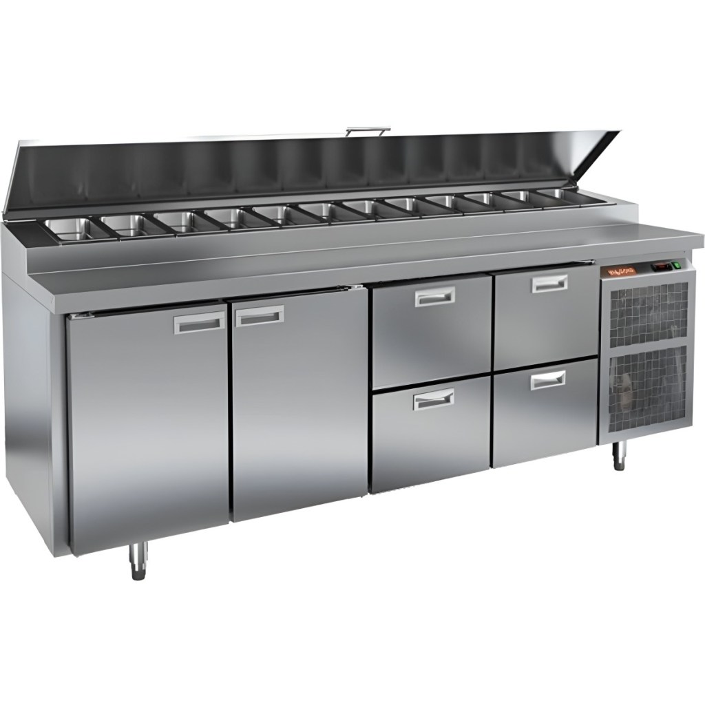 Каталог оборудования Холодильное оборудованиеСтолы охлаждаемыеСтолы холодильные для пиццыСтол холодильный для пиццы HiCold PZ1-1122/GN (1/3H) Стол холодильный для пиццы HiCold PZ1-1122/GN (1/3H) Код товара: 064-694 Поделиться: WhatsAppTelegram СравнитьДобавить в КПВ избранное 0 311 842 ₽ В корзину 0 шт Под заказСамовывоз сегодня бесплатно Взять в кредит Купить в лизинг Получить консультацию в Max Описание Характеристики Отзывы 0 Стол холодильный для пиццы HiCold PZ1-1122GN (1/3H) — профессиональное оборудование для ресторанов, кафе и предприятий торговли. Он совмещает рабочую поверхность для раскатки теста и подготовки ингредиентов с охлаждаемым блоком для кратковременного хранения продуктов и напитков. Корпус и столешница выполнены из нержавеющей стали, что гарантирует долговечность и лёгкость ухода. Основные особенности: Динамическая система охлаждения — равномерное распределение холода Автоматическая оттайка — поддержка стабильной работы без наледи Электронная панель управления — точная настройка температуры и режимов 2 вместительные полки формата GN 1/1 4 выдвижных ящика для хранения дополнительных ингредиентов Автоматические доводчики дверей с фиксатором открытого положения — удобство загрузки и выгрузки Легкозаменяемые магнитные уплотнители — поддержание герметичности Открытая агрегатная часть — облегчённый доступ к техническим элементам Регулируемые по высоте ножки — установка по уровню Максимальная глубина гастроёмкостей: 150 мм (крайняя правая — 100 мм) Глубина рабочей поверхности: 324 мм Толщина столешницы и теплоизоляции: 50 мм Вместимость салат-бара: до 12 гастроёмкостей Стол холодильный HiCold PZ1-1122GN (1/3H) — функциональный и удобный стол для пиццы и салатов, совмещающий рабочую поверхность, охлаждаемый блок, полки и ящики для хранения. Разная глубина гастроёмкостей и продуманная организация рабочего пространства делают его оптимальным решением для профессиональной кухни.Изображение товара, представленного на фото, может отличаться от его фактического вида. Показать все Габаритные размеры2280×700×1000 ммДиапазон рабочей температурыот +2 до +10 °CРасположение агрегатаБоковое Материал столешницыНержавеющая Тип столаС дверьми и ящиками Тип двериГлухая Объём660 лТип гастроемкостейGN 1/3 Количество дверей2 штКоличество ящиков4 штРазмер полки530×325 ммНапряжение220 ВМощность0,73 кВтТип охлажденияДинамическое Тип оттайкиАвтоматическая Габариты в упаковке2420×850×1080 ммВес нетто208 кгВес брутто228 кгБрендHicoldВсе холодильные столы для пиццы HicoldВсе нержавеющие холодильные столы для пиццы Оставить отзыв Еще никто не оставил отзыв на этот товар Ранее просмотрено Под заказ 260 272 ₽ Стол холодильный для пиццы HiCold PZ1-113GN (1/3H)