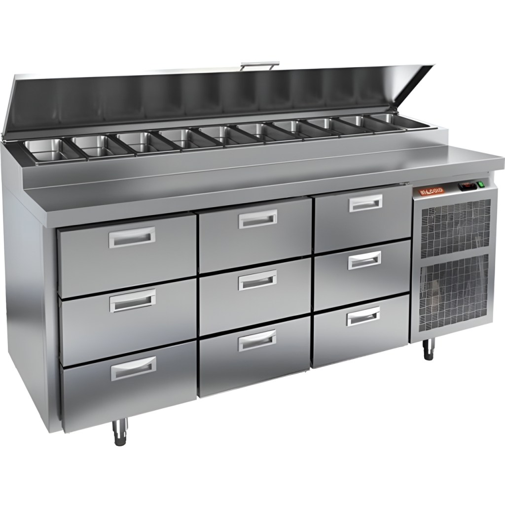 Каталог оборудования Холодильное оборудованиеСтолы охлаждаемыеСтолы холодильные для пиццыСтол холодильный для пиццы HiCold PZ1-333GN (1/3H) Стол холодильный для пиццы HiCold PZ1-333GN (1/3H) Код товара: 064-712 Поделиться: WhatsAppTelegram СравнитьДобавить в КПВ избранное 0 352 071 ₽ В корзину 0 шт Под заказСамовывоз сегодня бесплатно Взять в кредит Купить в лизинг Получить консультацию в WhatsApp Описание Характеристики Отзывы 0 Стол холодильный для пиццы HiCold PZ1-333GN (1/3H) — профессиональное оборудование для предприятий общественного питания и торговли. Он сочетает рабочую поверхность для раскатки теста и подготовки ингредиентов с охлаждаемым блоком для кратковременного хранения скоропортящихся продуктов и напитков. Такое решение обеспечивает максимальное удобство — все необходимые компоненты всегда находятся под рукой. Корпус и столешница выполнены из нержавеющей стали, что гарантирует долговечность, устойчивость к повреждениям и лёгкость ухода. Основные особенности: Нержавеющая столешница и корпус — прочность, гигиеничность и лёгкость очистки Динамическая система охлаждения — равномерное распределение холода Автоматическая оттайка — стабильная работа без образования наледи Электронная панель управления — точная настройка температуры 9 выдвижных ящиков — удобная организация внутреннего пространства без дверцы Автоматические доводчики ящиков — комфорт при работе Легкозаменяемые магнитные уплотнители — поддержание герметичности Открытая агрегатная часть — лёгкий доступ для обслуживания Регулируемые по высоте ножки — установка на неровных поверхностях Максимальная глубина гастроёмкостей: 100 мм Глубина рабочей поверхности: 324 мм Толщина столешницы и теплоизоляции: 50 мм Вместимость салат-бара: до 10 гастроёмкостей Стол холодильный HiCold PZ1-333GN (1/3H) — надёжный и функциональный холодильный стол для пиццы и салатов. Отсутствие дверцы и продуманная система хранения обеспечивают быстрый доступ к ингредиентам, удобство эксплуатации и высокую производительность на профессиональной кухне.Изображение товара, представленного на фото, может отличаться от его фактического вида. Показать все Габаритные размеры1835×700×1000 ммДиапазон рабочей температурыот +2 до +10 °CРасположение агрегатаБоковое Материал столешницыНержавеющая Тип столаС ящиками Объём505 лТип гастроемкостейGN 1/3 Количество ящиков9 штНапряжение220 ВМощность0,5 кВтТип охлажденияДинамическое Тип оттайкиАвтоматическая Габариты в упаковке2000×850×1140 ммВес нетто172 кгВес брутто200 кгБрендHicoldВсе холодильные столы для пиццы HicoldВсе нержавеющие холодильные столы для пиццы Оставить отзыв Еще никто не оставил отзыв на этот товар Ранее просмотрено Под заказ 302 122 ₽ Стол холодильный для пиццы HiCold PZE3-2111/GN камень Под заказ 283 851 ₽ Стол холодильный для пиццы HiCold PZ3-22/GN камень