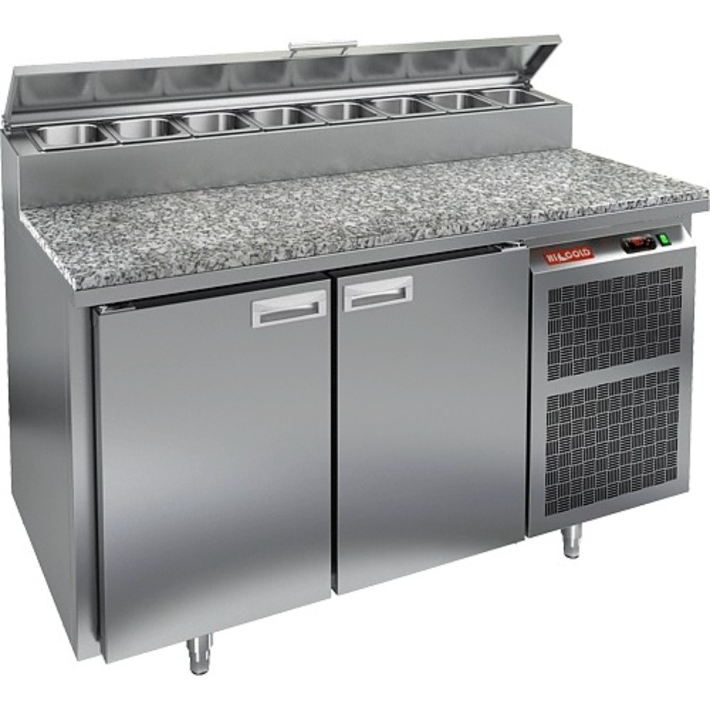Стол холодильный для пиццы HiCold PZ2-11/GN (1/6H) камень используется на предприятиях общественного питания и торговли для удобной подготовки блюд: от раскатки теста до нарезки и размещения ингредиентов. Он также выполняет функцию охлаждения и кратковременного хранения скоропортящихся продуктов и напитков.
