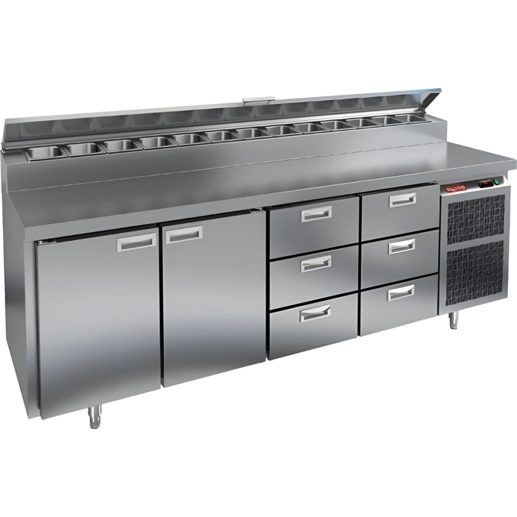 Каталог оборудования Холодильное оборудованиеСтолы охлаждаемыеСтолы холодильные для пиццыСтол холодильный для пиццы HiCold PZ2-1133GN (1/6) Стол холодильный для пиццы HiCold PZ2-1133GN (1/6) Код товара: 064-759 Поделиться: WhatsAppTelegram СравнитьДобавить в КПВ избранное 0 342 442 ₽ В корзину 0 шт Под заказСамовывоз сегодня бесплатно Взять в кредит Купить в лизинг Получить консультацию в WhatsApp Описание Характеристики Отзывы 0 Стол холодильный для пиццы HiCold PZ2-1133GN (1/6) предназначен для кухонь и предприятий общественного питания. Он используется для раскатки теста, подготовки ингредиентов для пиццы, салатов и других блюд, а также для охлаждения и кратковременного хранения скоропортящихся продуктов. Модель совмещает нержавеющую рабочую поверхность и охлаждаемый отсек с 2 дверьми и 6 ящиками, обеспечивая удобный доступ к ингредиентам и эффективное хранение. Особенности: Динамическая система охлаждения для равномерного поддержания температуры Автоматическая оттайка для удобного обслуживания Электронная панель управления для точной настройки параметров Вместительная внутренняя полка формата GN 1/1 (размер 530×325 мм) 2 двери и 6 вместительных ящика для хранения ингредиентов Автоматические доводчики дверей с фиксатором открытого положения Легкозаменяемые магнитные уплотнители для герметичности Открытая агрегатная часть для легкого доступа к компонентам Регулируемые по высоте ножки для устойчивости Нержавеющая столешница глубиной 486 мм и толщиной 50 мм — устойчива к коррозии, легко моется и гигиенична Толщина теплоизоляции: 50 мм Максимальная глубина гастроемкостей: 100 мм Вместимость салат-бара: 13 гастроемкости Стол холодильный HiCold PZ2-1133GN (1/6) — это надежный и функциональный стол для пиццы. Он объединяет рабочую поверхность и охлаждаемый отсек, упрощает хранение и подготовку ингредиентов, обеспечивает удобство работы повара и соответствует стандартам профессиональной кухни. Изображение товара, представленного на фото, может отличаться от его фактического вида. Показать все Габаритные размеры2280×700×1000 ммДиапазон рабочей температурыот +2 до +10 °CРасположение агрегатаБоковое Материал столешницыНержавеющая Тип столаС дверьми и ящиками Тип двериГлухая Объём660 лТип гастроемкостейGN 1/6 Количество дверей2 штКоличество ящиков6 штРазмер полки530×325 ммНапряжение220 ВМощность0,5 кВтТип охлажденияДинамическое Тип оттайкиАвтоматическая Габариты в упаковке2420×850×1080 ммВес нетто208 кгВес брутто240 кгБрендHicoldВсе холодильные столы для пиццы HicoldВсе нержавеющие холодильные столы для пиццы Оставить отзыв Еще никто не оставил отзыв на этот товар Ранее просмотрено Под заказ 220 221 ₽ Стол холодильный для пиццы HiCold PZE1-1111GN (1/3) Под заказ 306 171 ₽ Стол холодильный для пиццы HiCold PZ2-222GN (1/6) Под заказ 250 642 ₽ Стол холодильный для пиццы HiCold PZ1-1111GN (1/3)