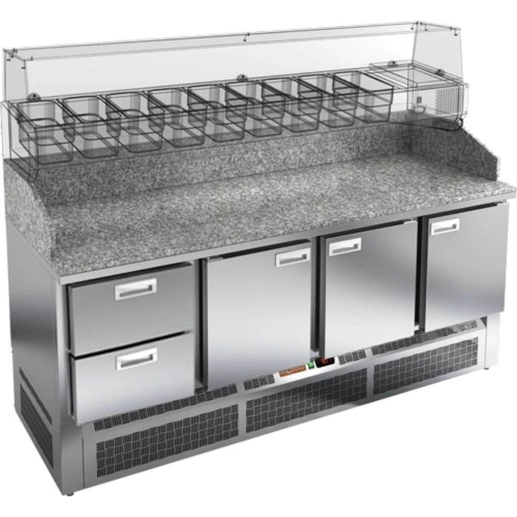 Каталог оборудования Холодильное оборудованиеСтолы охлаждаемыеСтолы холодильные для пиццыСтол холодильный для пиццы HiCold PZE3-2111/GN камень Стол холодильный для пиццы HiCold PZE3-2111/GN камень Код товара: 064-992 Поделиться: WhatsAppTelegram СравнитьДобавить в КПВ избранное 0 302 122 ₽ В корзину 0 шт Под заказСамовывоз сегодня бесплатно Взять в кредит Купить в лизинг Получить консультацию в WhatsApp Описание Характеристики Отзывы 0 Стол холодильный для пиццы HiCold PZE3-2111/GN камень предназначен для использования на предприятиях общественного питания и торговли. Он идеально подходит для раскатки теста, подготовки ингредиентов и кратковременного хранения скоропортящихся продуктов и напитков. Благодаря совмещению охлаждаемого объёма и просторной рабочей поверхности, стол значительно упрощает и ускоряет процесс приготовления блюд. Корпус изготовлен из нержавеющей стали, а прочная гранитная столешница устойчива к механическим и температурным нагрузкам. Особенности модели: Корпус: нержавеющая сталь — прочный, гигиеничный и долговечный Столешница: гранит — устойчива к царапинам, ударам и температурным нагрузкам Охлаждение: динамическое для равномерного поддержания температуры Оттайка: автоматическая — удобство и экономия времени Панель управления: электронная — точная настройка температуры Ножки: регулируемые по высоте — устойчивость на неровной поверхности Двери: 3 глухие дверцы с автоматическим доводчиком и фиксатором открытого положения Ящики: 2 выдвижных ящика — удобное хранение ингредиентов Уплотнители: легкозаменяемые магнитные — герметичность и простота обслуживания Толщина теплоизоляции: 50 мм — сохранение холода и энергоэффективность Рабочая поверхность: глубина 680 мм — удобство работы HiCold PZE3-2111/GN камень — профессиональный стол для пиццы, сочетающий в себе эргономику, долговечность и удобство, что делает его отличным выбором для интенсивной работы на кухне.Изображение товара, представленного на фото, может отличаться от его фактического вида. Показать все Габаритные размеры1970×600×1050 ммДиапазон рабочей температурыот +2 до +10 °CРасположение агрегатаНижнее Материал столешницыГранитная Тип столаС дверьми и ящиками Тип двериГлухая Объём505 лКоличество дверей2 штКоличество ящиков3 штРазмер полки530×325 ммНапряжение220 ВМощность0,5 кВтТип охлажденияДинамическое Тип оттайкиАвтоматическая Габариты в упаковке2000×850×1180 ммВес нетто240 кгВес брутто300 кгБрендHicoldВсе холодильные столы для пиццы HicoldВсе нержавеющие холодильные столы для пиццы Оставить отзыв Еще никто не оставил отзыв на этот товар Ранее просмотрено Под заказ 283 851 ₽ Стол холодильный для пиццы HiCold PZ3-22/GN камень